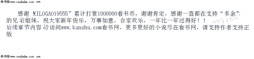 【感谢“XILOGAO19555 ”累计打赏1000000看书币】T